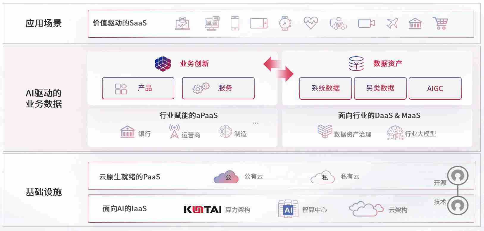 数字时代,,,围绕企业数字化转型的关键要素,,z6com尊龙数码开创性的提出数云融合战略和技术体系框架,,着力在云原生、、、、数字原生、、AI原生和信创产业上架构产品和服务能力,,为处在不同数字化转型阶段的快消零售、、、汽车、、、金融、、医疗、、、政企、、、教育、、运营商等行业客户提供泛在的敏捷IT能力和融合的数据驱动能力,,,,构建跨界融合创新的数字业务场景和新业务模式,,助力企业级客户建立面向未来的核心能力和竞争优势,,,全面推动社会的数字化、、、智能化转型升级。。。