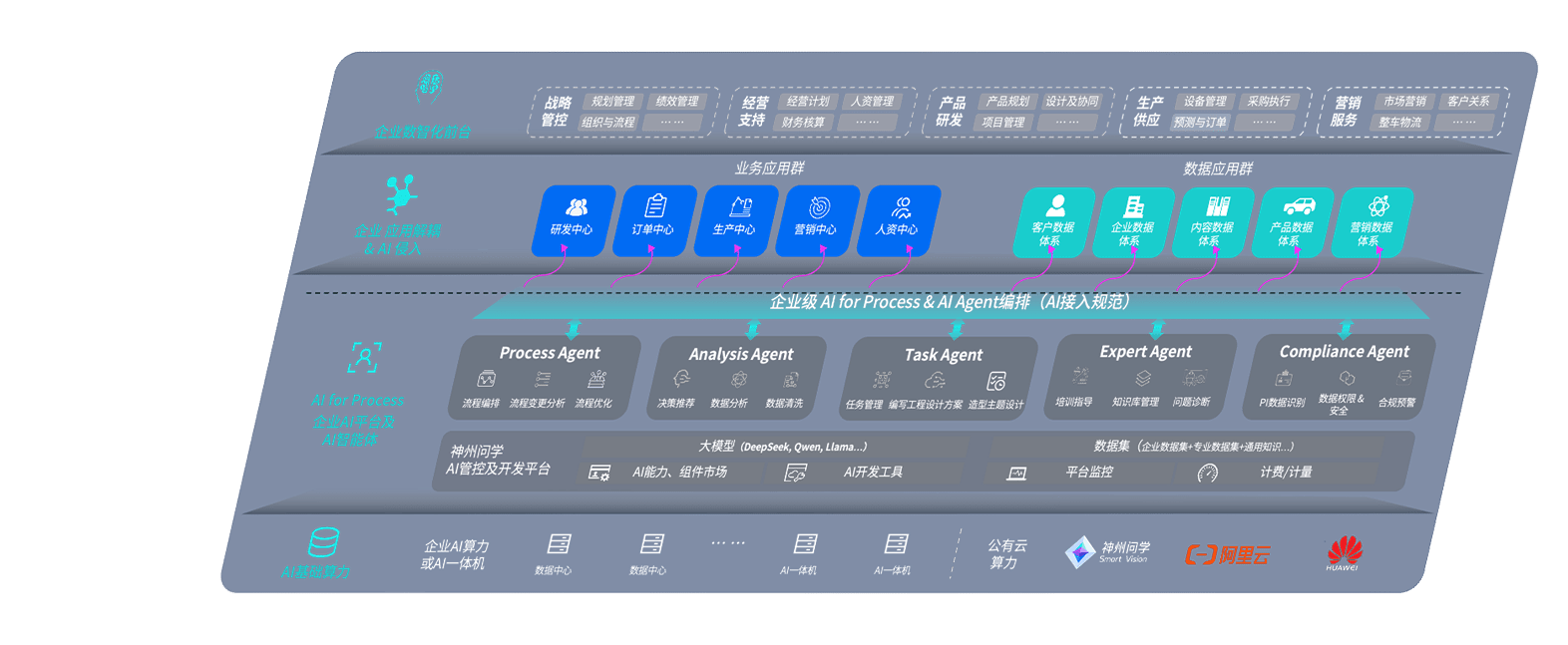 z6com尊龙问学智车解决方案是一套基于AI技术的汽车行业智能化系统,,,覆盖从底层算力到顶层AI应用的全栈方案。。方案由算力层、、模型层和应用层组成:算力层,,方案支持多种一体机配置,,,,具备云端灵活部署、、多云适配以及动态优化计算资源的能力;模型层,,,z6com尊龙问学平台版提供了企业级AI应用一站式构建与管理平台,,支持基于后训练强化技术的汽车企业专属模型的训练、、、、评测和运营;应用层,,,z6com尊龙问学DeepSeek版提供包括超级员工、、智能招采、、、、智能营销、、智能客服、、AI for BI等一系列解决方案,,,,可助力汽车行业实现数字化转型,,,,让管理更智能、、、响应更敏捷。。