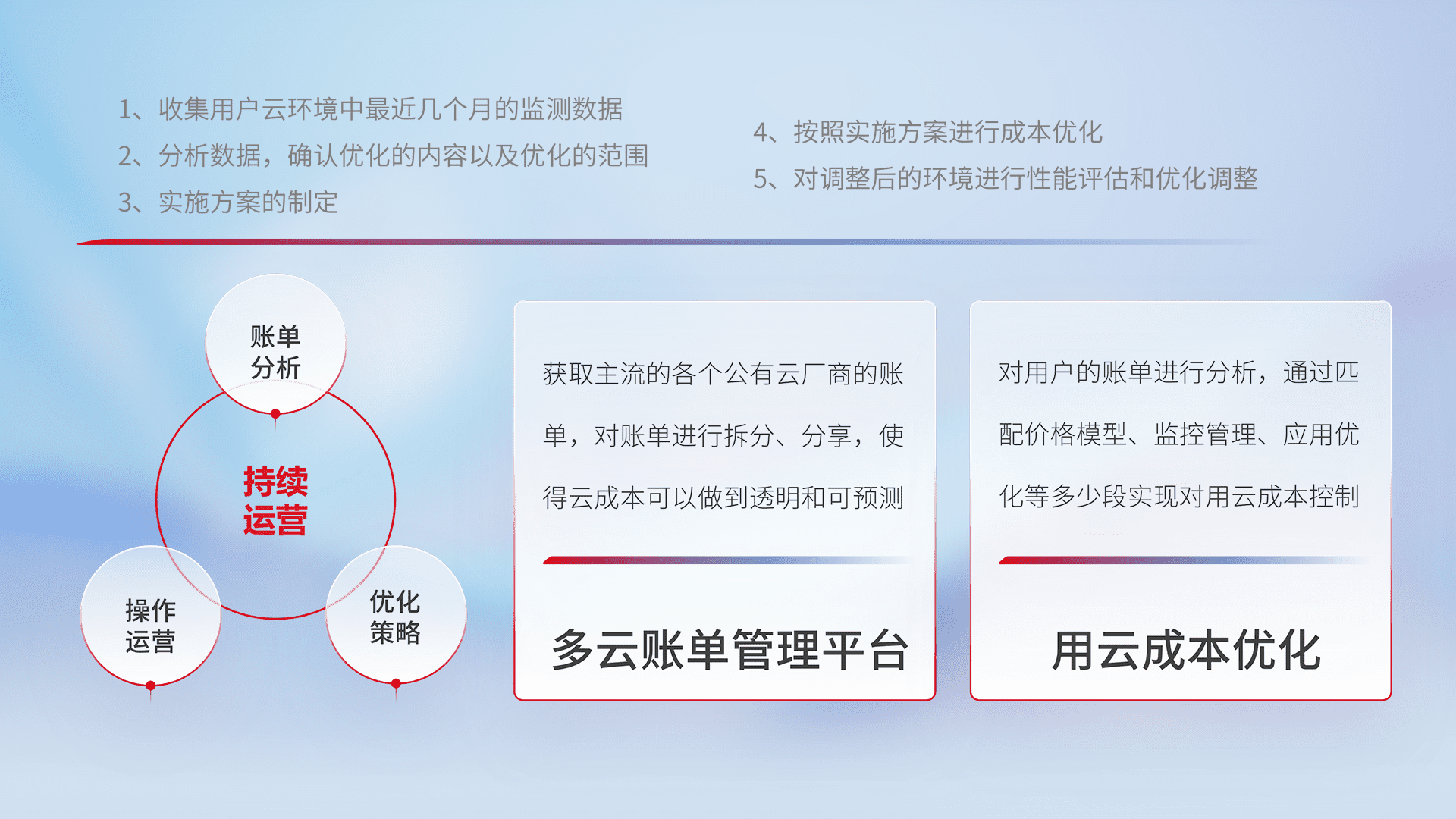 监控业务系统资源开销,,对资源的消耗精确计量,,,实现费用的透明化管理,,,不断提升资源使用率,,,,调整资源购买方式,,,,降低资源费用成本,,用云成本可预测、、用云费用可优化,,,云资源配额有据可依。。